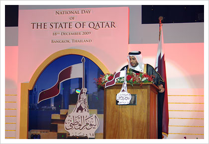On Thursday 18 December 2009, The Embassy of the State of Qatar, Bangkok, headed by H.E. Mr. Abdalla Al-Hamar and Mr. Ali Mohammed K.A. Albinali Third Secretary hosted the Qatar National Day reception at the Grand Ballroom, Grand Hyatt Erawan Hotel.