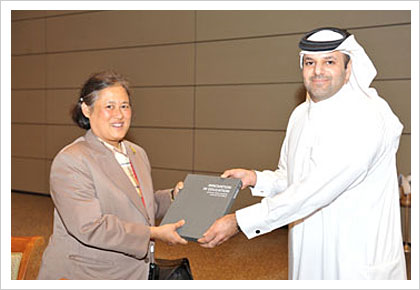 The Thai Princess observed a presentation outlining the vision and mission of QF, before viewing a 3D scale model of the Qatar Foundation site, including future construction projects. During lunch, gifts were exchanged between the Thai Princess and Dr. Abdulla bin Ali Al-Thani, President of Hamad bin Khalifa University, and Vice-President for Education at QF. Later, Her Royal Highness continued her tour with a visit to Qatar Academy, Awsaj Institute of Education, and the Faculty of Islamic Studies.